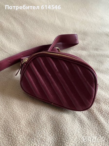 Чантата е в цвят бордо и може да се носи, както през кръста, така и през рамото.