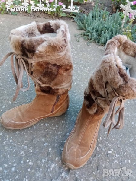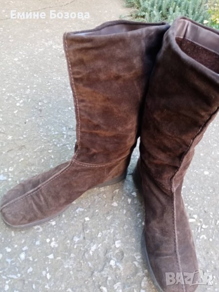 4. Светло кафяви велурени ботуши №40 цяла посметка малък цип нагоре цели стелка външно 26 нагоре булана отпред връзки ширина на прасеца 19см.Цена 5лв.