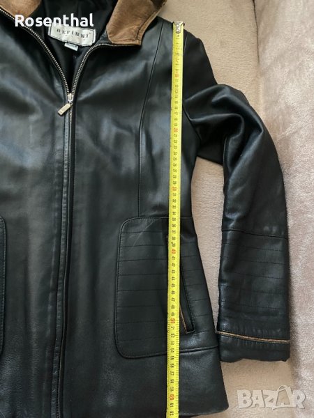 Размерите са показани на снимки. По етикет е XL, но реално отговаря на L. Якенцето е вталени и стои много елегантно. Няма нараняване по кожата, по хастара от вътре - също. Леко, едва незабележимо изтъркване на ръкавите, но не е сериозно и дори не личи, въпреки това съм го снимала, за да добиете представа. Горе на качулката, от дясно има забележка на кафявата кожа, което лесно може да се възстанови. Описвам всичко с подробности, за да получите ясна представа за това, което ще получите. Кожата е много качествена и мекичка. На дамата, която го хареса и ѝ пасне по размер, пожелавам да си го носи със здраве и да ѝ бъде на късмет! Предлагам още едно кожено якенце, по-късичко от това, но трябва да му се смени машинката на ципа и да се зашие хастарчета при ръкавите. Ако имате интерес, вижте следващата ми обява! Изпращам по куриер или при желание - лично предаване в центъра или Люлин.