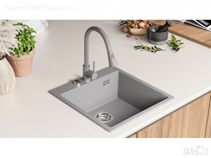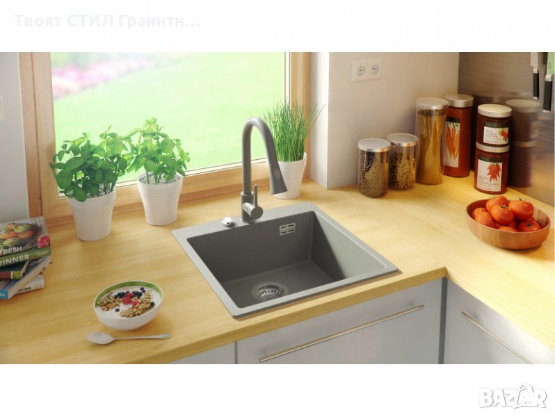 Кухненска Мивка от гранит модел Осло 50 XXL 490 x 500 mm - сива → Обява 38519947