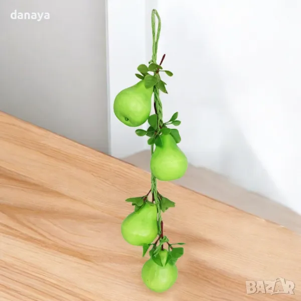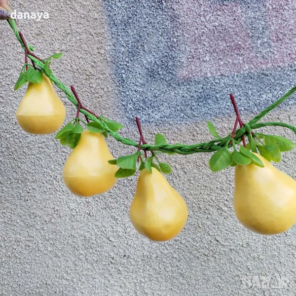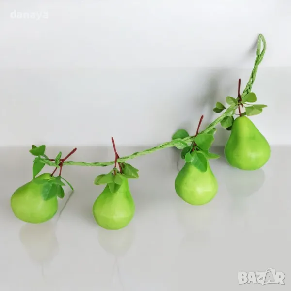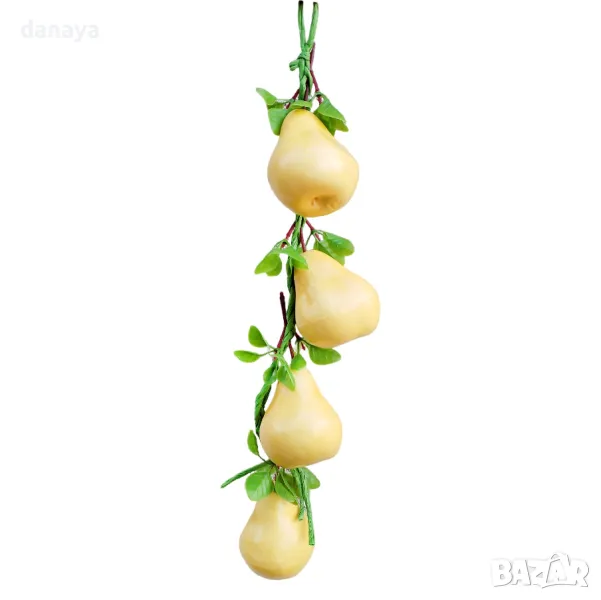 Реалистична връзка изкуствени круши, връзка от 4 броя жълти круши с листенца. Изкуствени декоративни круши, чудесни за декор и украса в битов кът, кухня, декориране на заведения, магазини и всякакъв тип помещения.