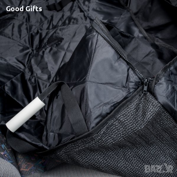 Покривалото е подходящо за средни и едри породи кучета. Заема цялата задната седалка на автомобила Ви, без да покрива корите на вратите. Предотвратява попадането на косми, кал и нечистотии по тапицерията на колата Ви.