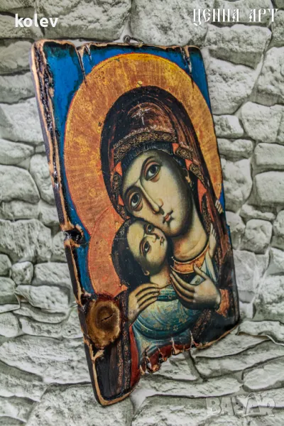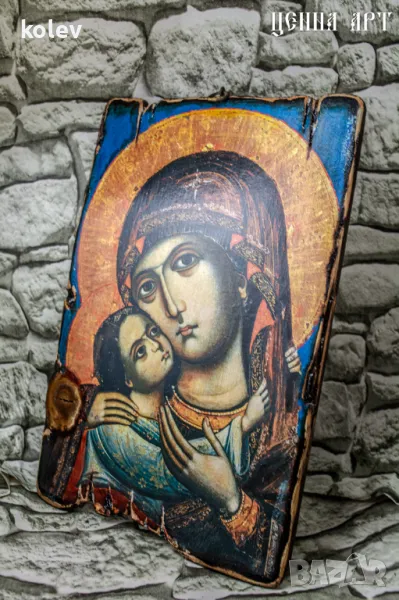 Иконата е ръчна изработка на "Ценна Арт", техника художествен декупаж върху дървена дъска,