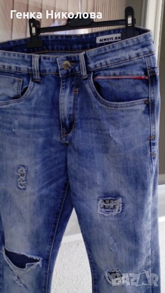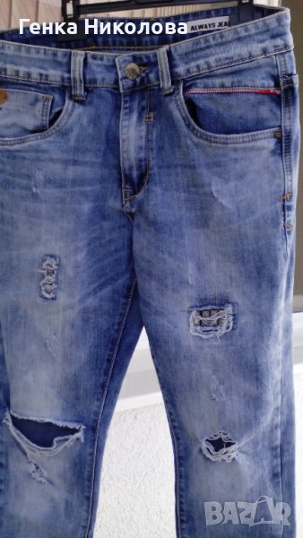 Продавам чудесни дамски дънки - светло сини с декоративни кръпки.