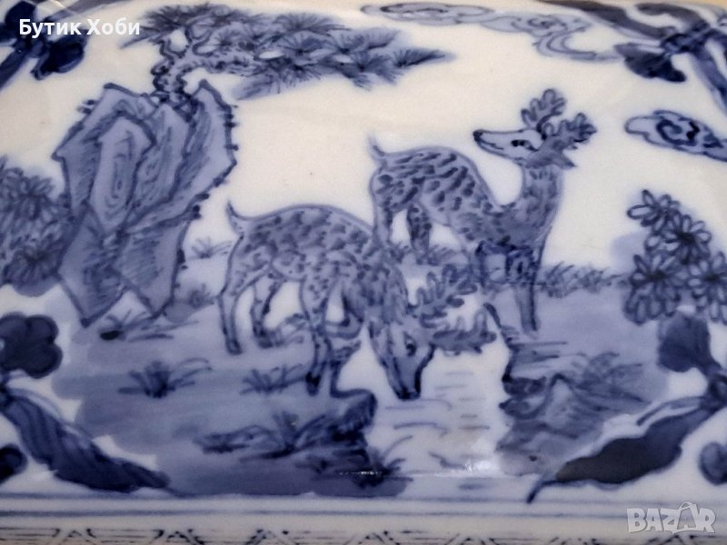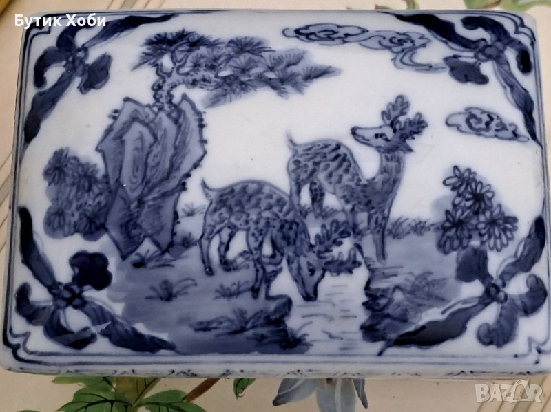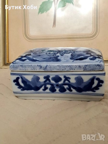 Стара порцеланова бижутерка в синьо, стил ,,Делфт,, Нежен мотив, прекрасно състояние. Размер - 12 × 8 × 6см. Без маркировки.
