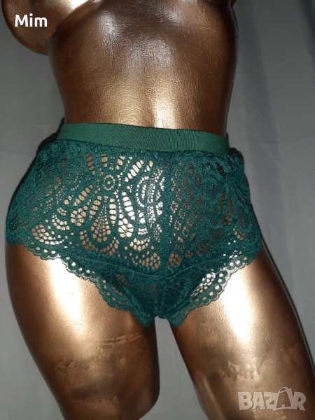 XXL и XXXXL Maслено зелена дантелена полупрашка с висока талия → Обява 38530136