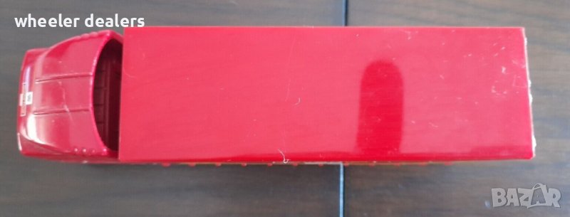 Камионът е дълъг 16 см. Гумите са гумени.