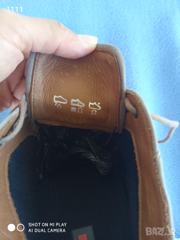 Обувките са обувани броени пъти,в отлично състояние са.Много атрактивен цвят.Единия чифт е естествен велур,другите са естествена кожа. И двата са номер 42 с дължина на стелката 27см. Цена за чифт 68лв.Марката е скъпа и качествена.Обувките ще ви служат дълго време.