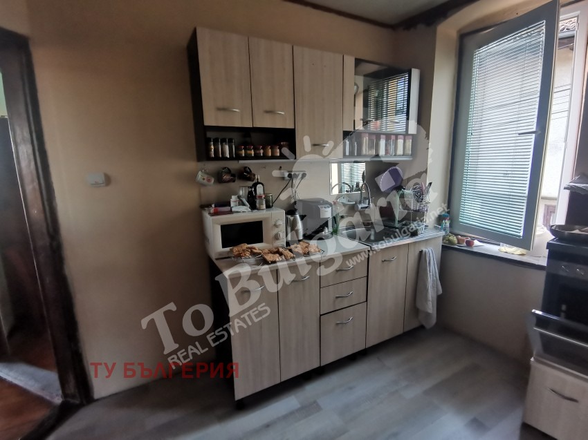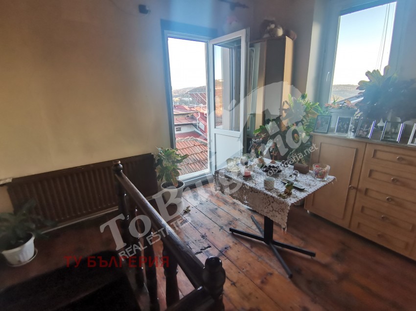 ID:10265 ''Ту Бългерия'' - недвижими имоти предлагат на своите клиенти двуетажна къща в Старата част на гр. Велико Търново, на тиха уличка, недалеко от центъра на града. Първият етаж се състои от коридор, спалня, баня с тоалетна, дневна, кухненски бокс и килер, който води до просторна маза подходяща за направата на механа. Вътрешно дървено стълбище води до втория етаж, където има две спални и дневна с кухненски бокс. От имота се открива невероятна панорамна гледка към крепостта ''Царевец''. Къщата е изцяло отремонтирана, с PVC дограма, външна изолация, нов покрив, разполага със здрави каменни зидове и високи тавани в помещенията.