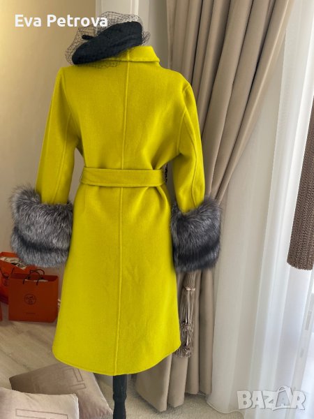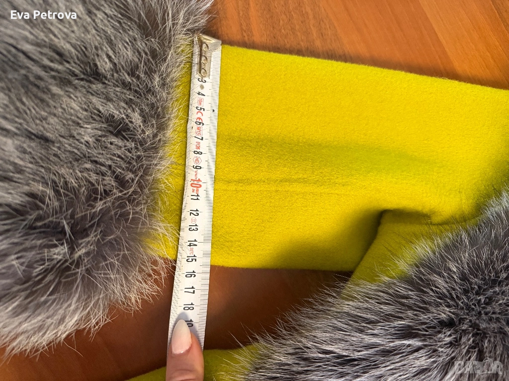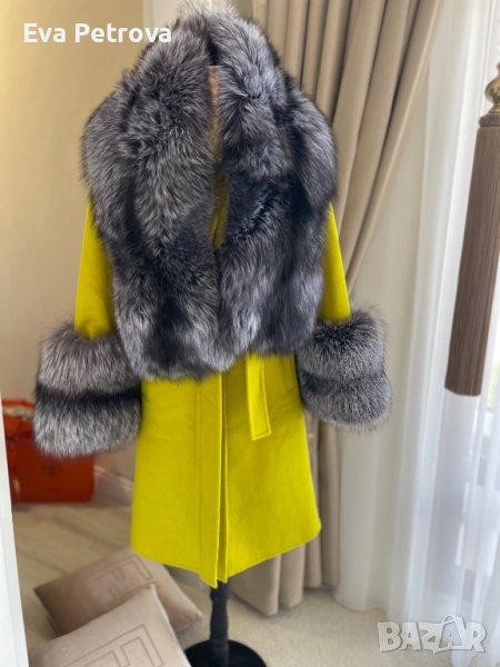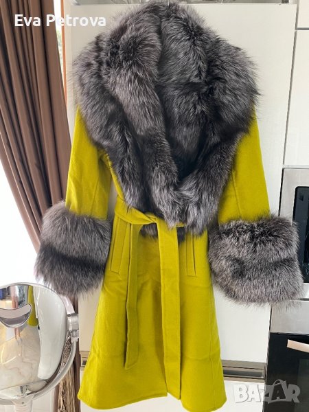 Дамско палто Естествена италянска вълна лама и естествен косъм от сибирска лисица и миеща мечка.