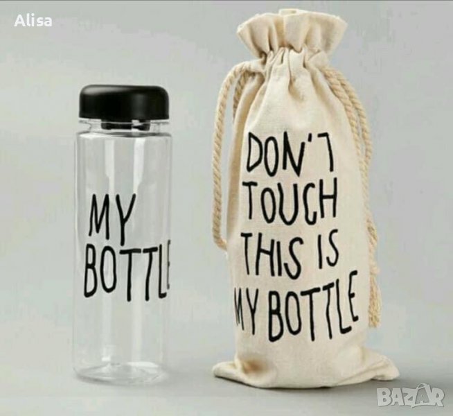 Бутилка + калъф с надпис "Не пипай това е моята бутилка” 🖤 → Обява 38540764