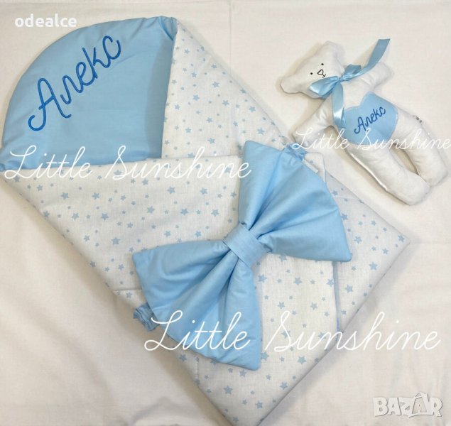 Одеялцето Little Sunshine тип "прегърни ме", подходящо за малки бебчета е практично, красиво и много удобно. Малките съкровища ще бъдат защитени и внимателно загърнати в него, благодарение на помощните залепващи се страни, които осигуряват комфорт и сигурност. Важно е да отбележим, че е и бързосъхнещо. Повиването на новороденото бебенце става бързо и лесно, много удобно за изписване, удобно за разходки с количката, сън вкъщи, подходящо за подарък, може да се използва като завивка, когато се разгърне.