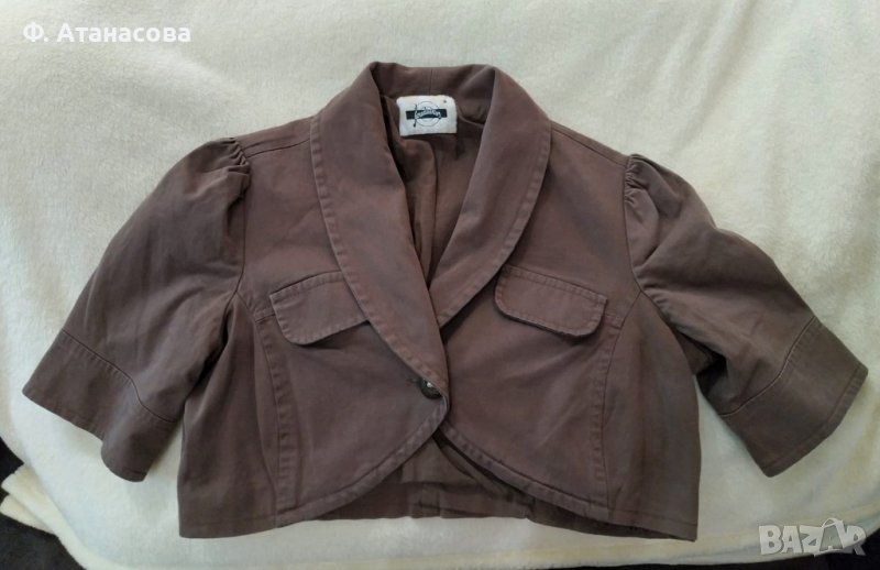 3. Кафяво болеро или късо сако Страдивариус / Stradivarius. Много приятно болеро за стилна визия. Марката е Stradivarius. Материята е 97% памук, 3% еластан.