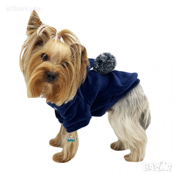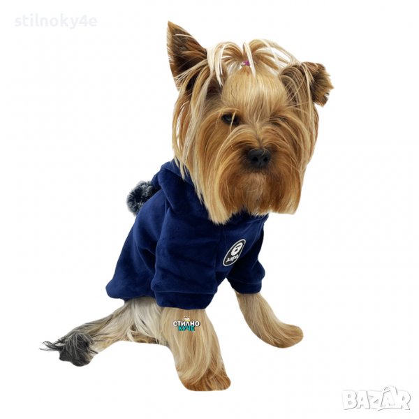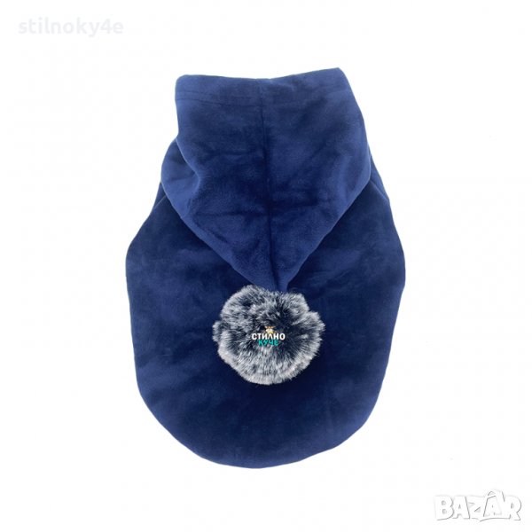 Суитшърт за куче в тъмно син цвят и помпон на качулката.