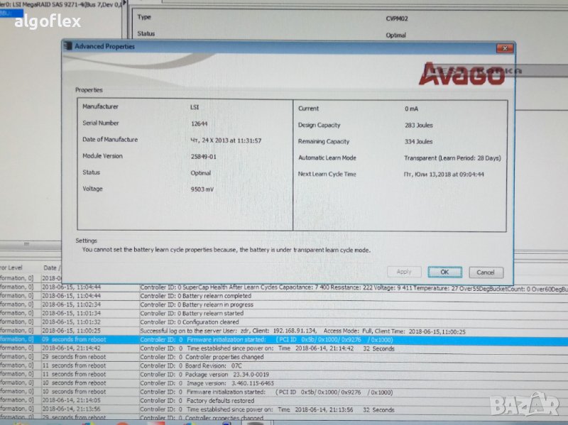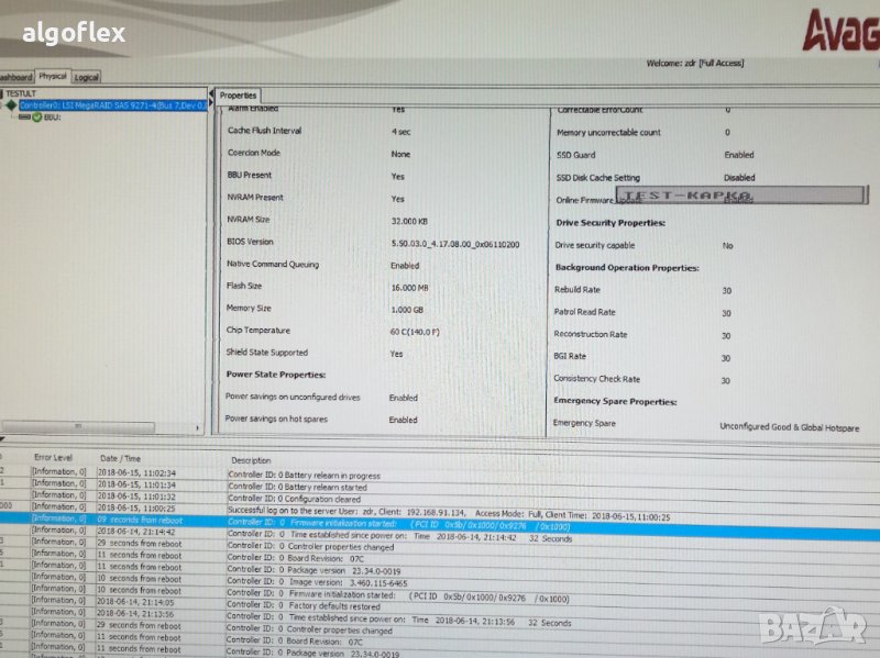 LSI MegaRAID фърмуер: 3.460.115-64 65 BIOS 6.1-71-Rel (LSI pkg 23.34.0-0019 )