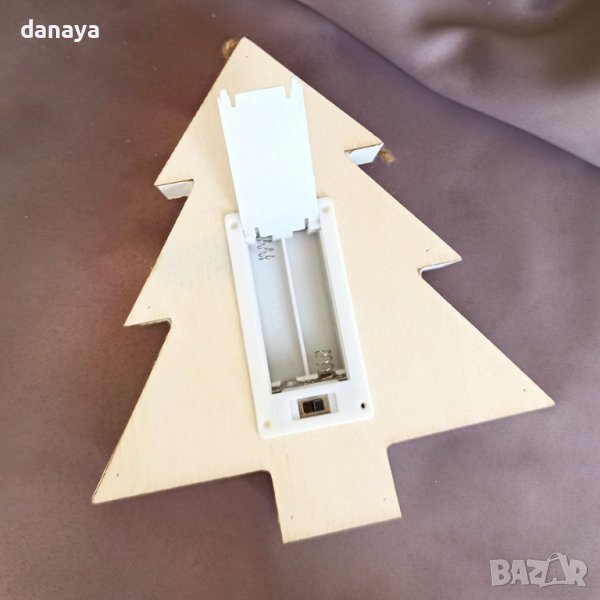 Изработена от MDF материал, захранва се с две ААА батерии (не са включени в комплекта). Елхичката може да стои самостоятелно, както и да се закачи на стена, врата, предмет…