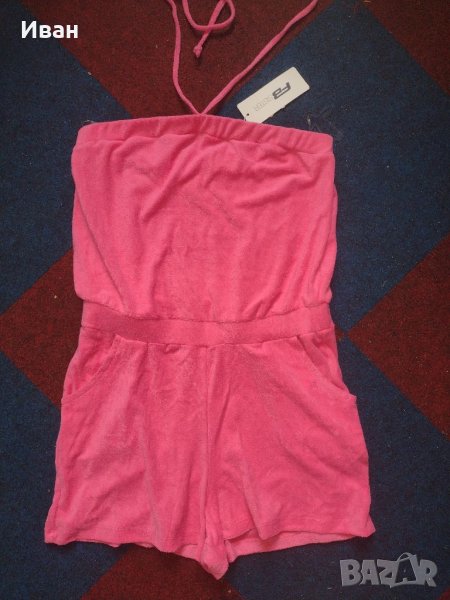 Много нежно розов гащеризон. По етикет л размер,но би станал добре и на м. Поради голямата еластичност и ластик на талията би станал и на хл