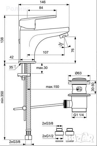 ВИДИМА СТОЯЩ СМЕСИТЕЛ ЗА УМИВАЛНИК С ИЗПУСКАТЕЛ SEVA L В0966АА, снимка 1 - Други стоки за дома - 38558003 ВИДИМА СТОЯЩ СМЕСИТЕЛ ЗА УМИВАЛНИК С ИЗПУСКАТЕЛ SEVA L В0966АА, снимка 2 - Други стоки за дома - 38558003 1/2