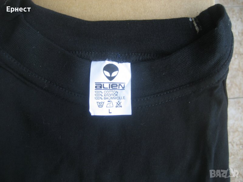 Големина М, но на етикетите, тениските са произведени от Alien и са обозначени с номерация L. Явно при различните фирми имат разлика и за различните континенти и понякога държави големините не са еднакви и не отговарят.