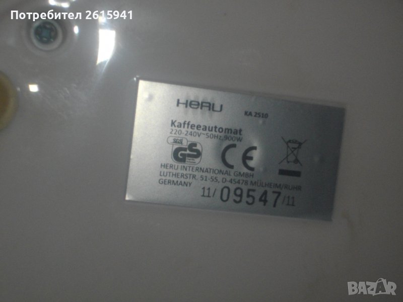 900 Вата-Немска Шварц Кафе машина-Отлчна-Почти Нова-HERU KA2510 → Обява 38558271