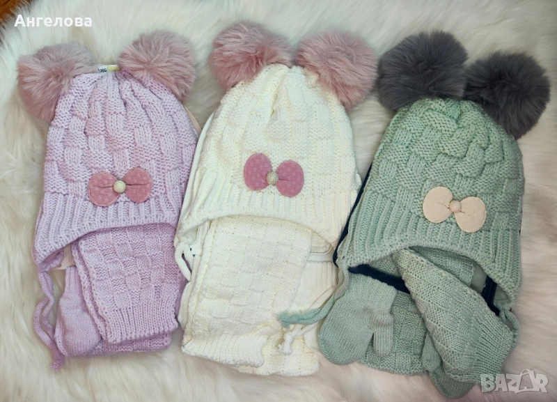 Нови зимни комплекти шапка, шал и ръкавички за момиче