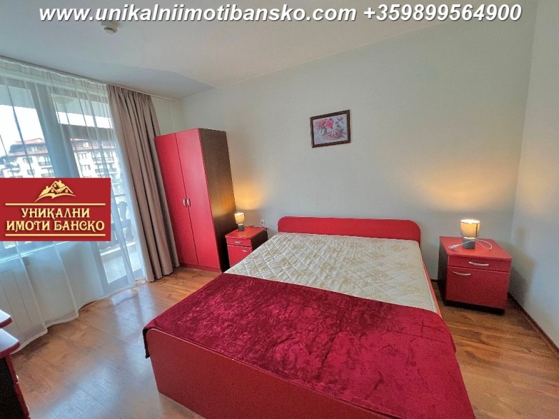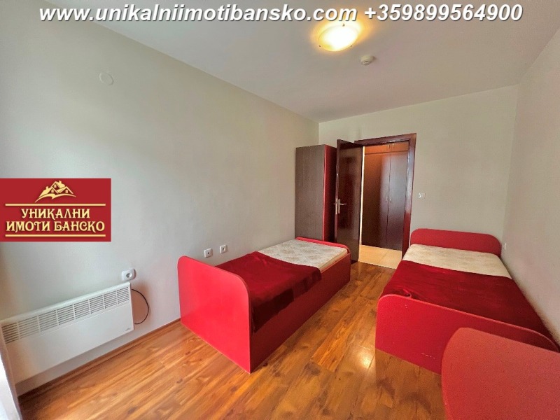 кожен диван с масичка, а под тях има друг диван, до който има поставен ТВ шкаф с телевизор. Стаята има излаз към просторна тераса. Едната от спалните е оборудвана с две единични легла, а другата с едно голямо двойно легло и гардероб. И двете спални имат излаз към тераса, която е обща за всекидневната и спалните. Едната от баните е оборудвана с душ кабина и тоалетна, а другата само с тоалетна. Комплексът е разположен на тихо място в ски зоната, като разстоянието до кабинковият лифт пеша е малко повече от 5 минути! Услугите, които са включени в таксата поддръжка са СПА център, басейн, рецепция, охранта, почистване, поддръжка и осветление на общите части и други. Страхотна инвестиция в жилище, което може да ползвате като ваше постоянно или да отдавате успешно под наем!