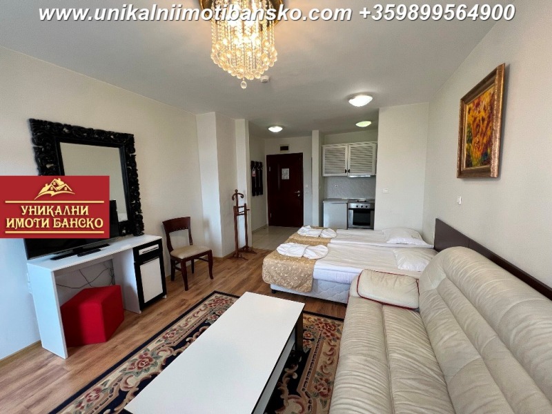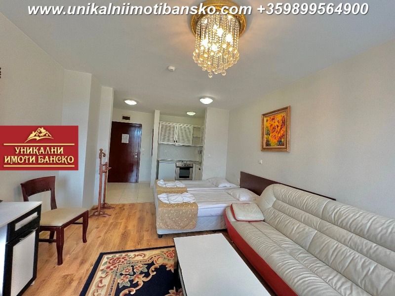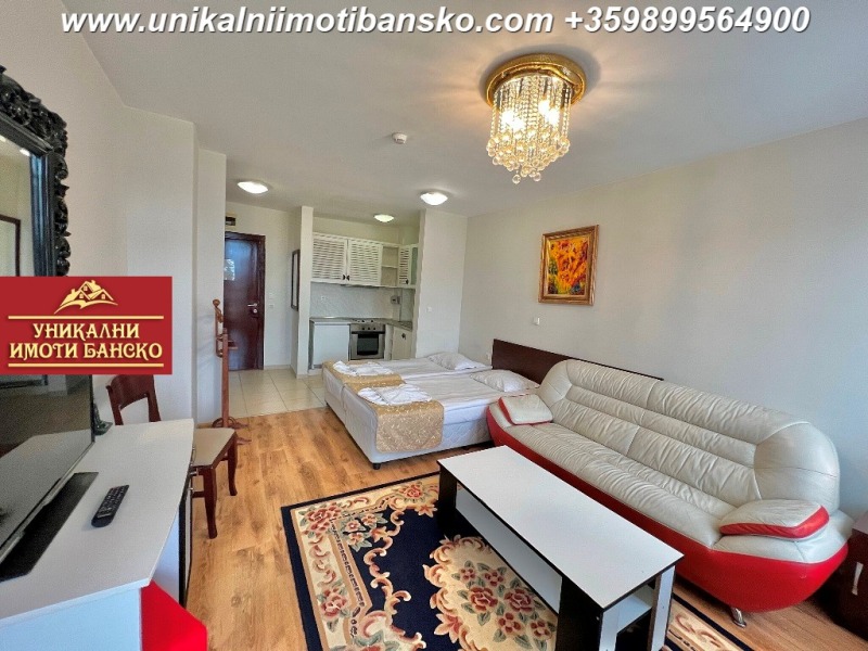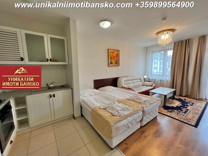 www.unikalniimotibansko.com БЕЗ КОМИСИОННА ОТ КУПУВАЧА! Агенция 'Уникални Имоти Банско' предлага за продажба НАПЪЛНО ОБЗАВЕДЕН И ГОТОВ ЗА НАНАСЯНЕ ДВУСТАЕН АПАРТАМЕНТ, РАЗПОЛОЖЕН В КОМПЛЕКС С ОТЛИЧНА ЛОКАЦИЯ - БЛИЗКО ДО СКИ ЛИФТА! Апартаментът е разположен на 2-ри етаж, като е съставен от просторна всекидневна с кухненски бокс, срещу който има поставени две единични легла, които са съединени като едно голямо, под тях има поставен