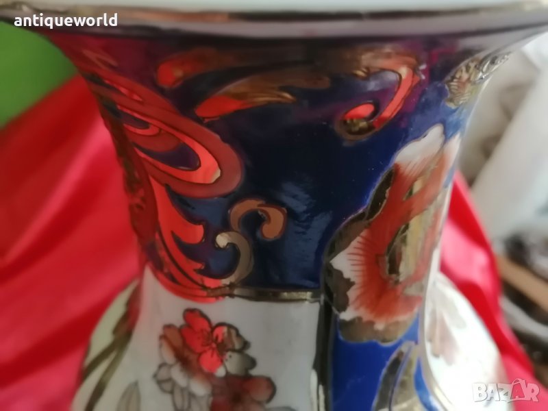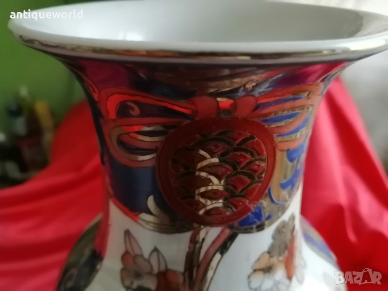 Уникална Много Красива Стара Голяма Японска Порцеланова ВАЗА Imari / Период Мейджи. Маркирана! Ръчно рисувана, злато ,флорални мотиви , Златен Феникс.Здрава.