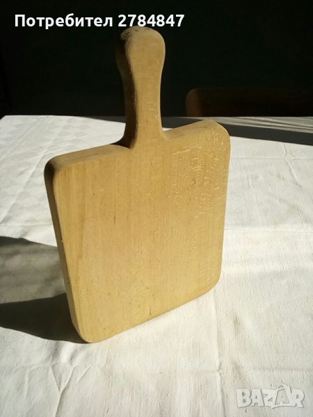 Размери на дъската с дръшка: ширина 18 см, дължина с дръшката 31 см, дебелина 2,5 см, дръшка 9 см на 3 см.
