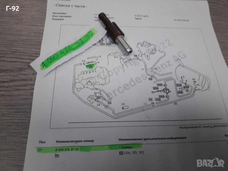A0004763732**NEU** MERCEDES-BENZ**ВЪЗВРАТЕН НЛАПАН ЗА ГОРИВО **