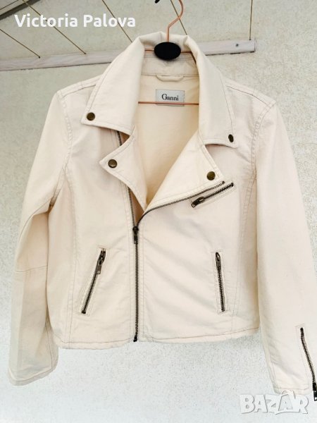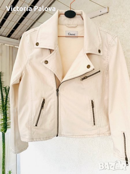Красив млечен цвят,хубав деним,подхожда на всички размери,включая и малък XL.рамене-42,ГО-50см,дължина-51,ръкав-54-55см.в долния край широчината е 50см.