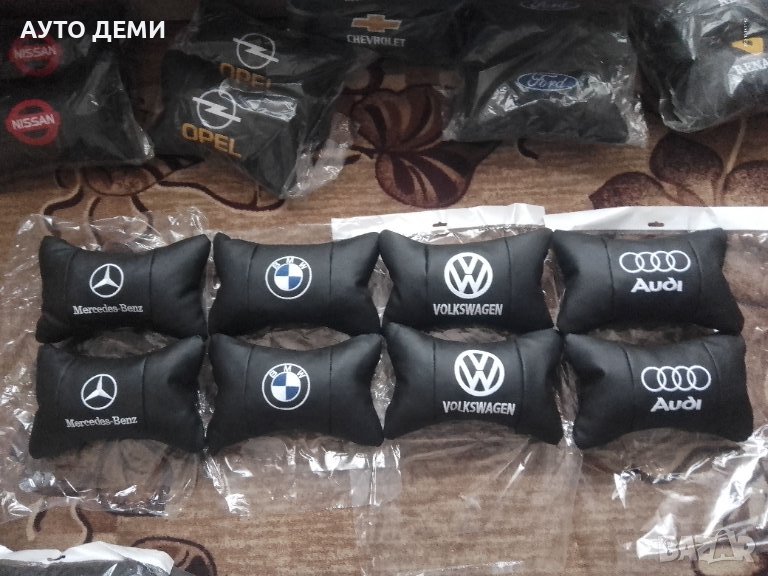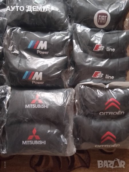 Цена за комплект от две кожени възглавнички в цвят черен с лого - 20 лв с ДДС и подарък към всеки комплект възглавнички давам 1 брой ароматизатор за кола или 4 броя капачки за вентили на гуми цвят хром ( никел ) .