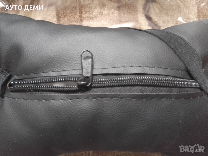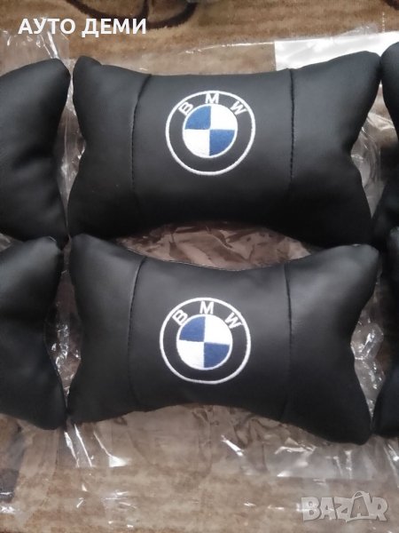 Продавам нови качествени изцяло кожени черни възглавнички за автомобилна седалка с бродиран надпис и емблема от здрав конец .