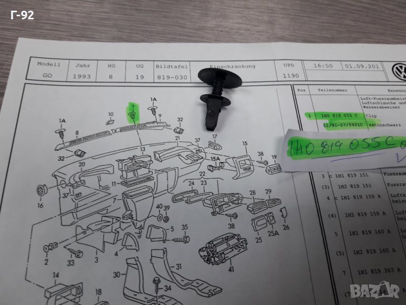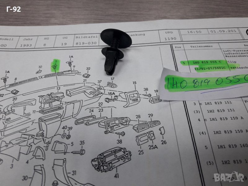 1H0819055C/01C**NEU**VAG**VW**ДЪРЖАЧИ - ЩИПКИ ЗА ВЪНШНИ ОБЛИЦОВКИ**