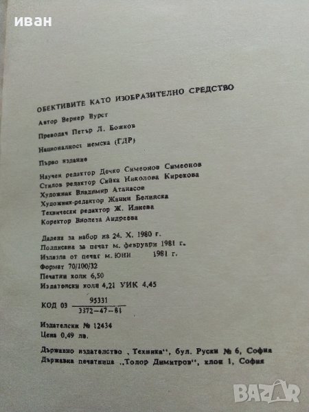 Обективите като изобразително средство - В.Вурст - 1981г.  → Обява 38580547