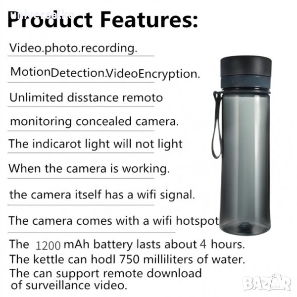 Най-новата 4К Full HD шпионска скрита камера в спортна бутилка за вода!