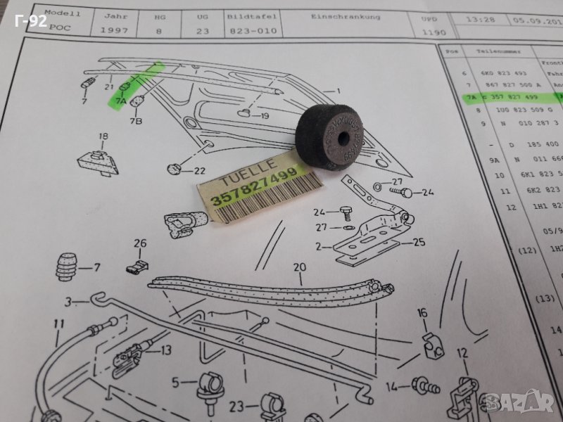357827499**NEU**VAG**VW**AUDI**ТАМПОН ЗА ПРЕДЕН КАПАК **