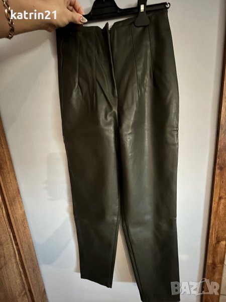 Маслено зелен кожен панталон → Обява 38583024
