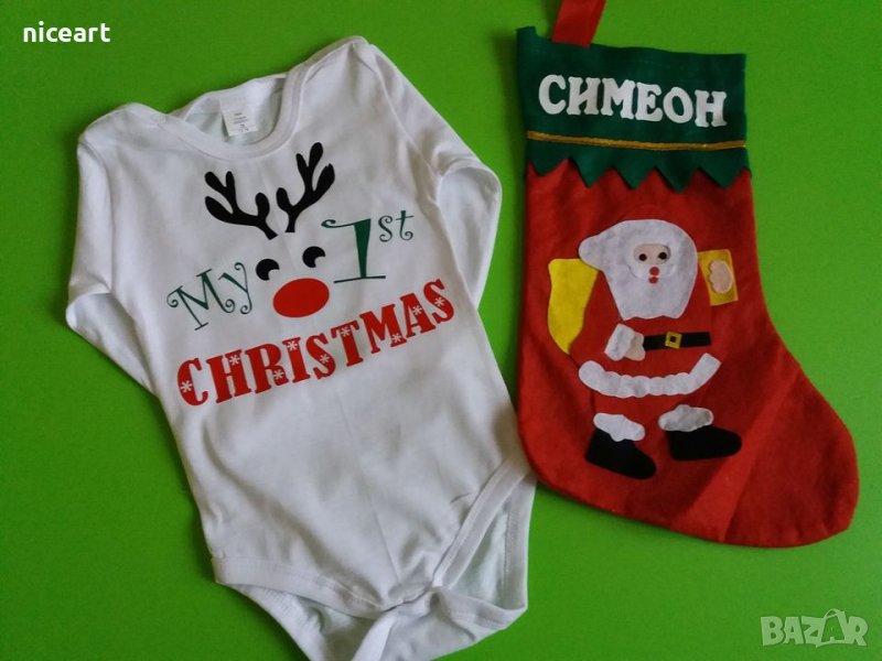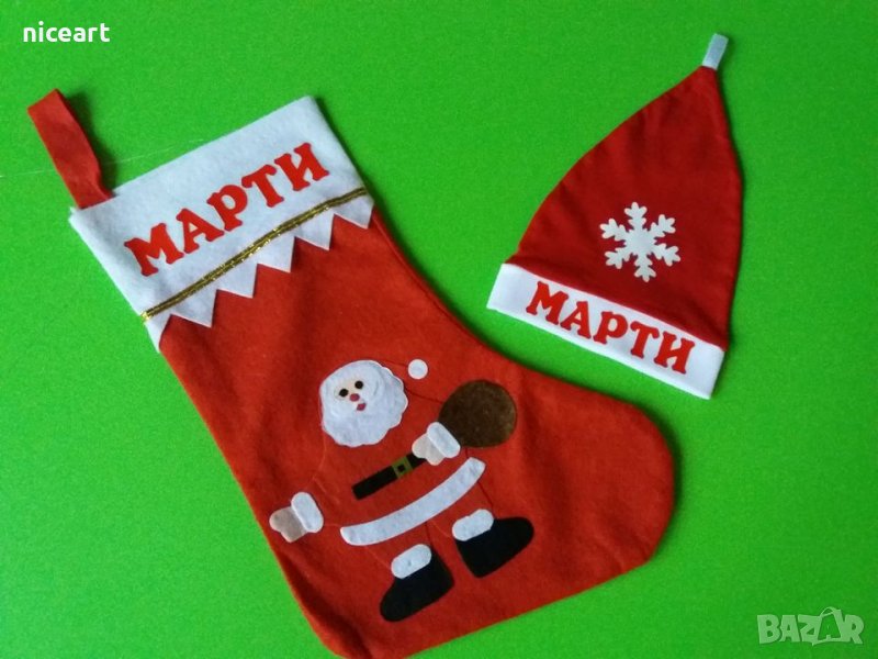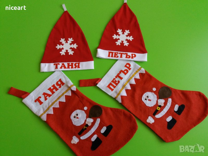 Нови коледни чорапчета с име за декорация ,височина 37 см.Подходящи са за малки подаръчета или лакомства.За над 8 бройки има отстъпка