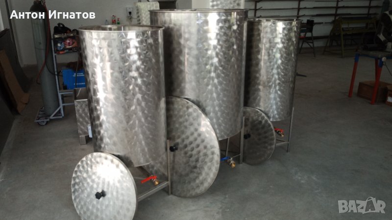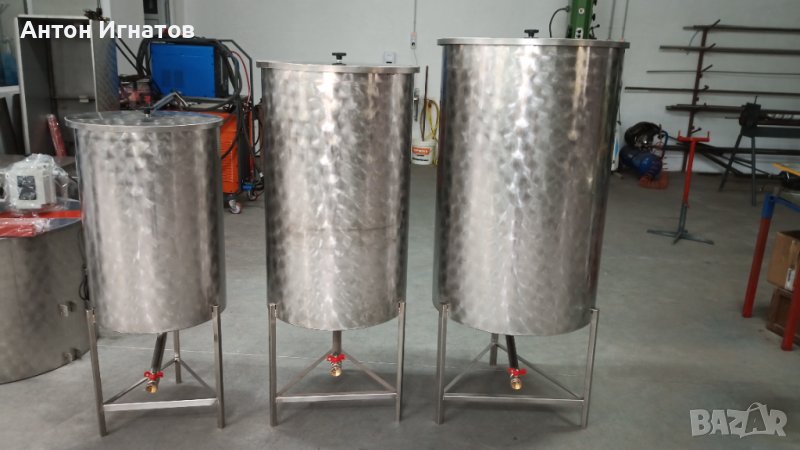 Матуратор. Съд за вино, мляко, мед, зехтин, бира и д-р. От 100 до 2000л. Отворени с капак или затворени тип цистерна.