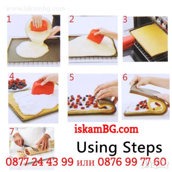 Готовата смес за руло се изсипва директно върху силиконовата, незалепваща постелка, след което се пече във фурна. Борда на силиконовата постелка е с височина, каквато е максималната дебелина на блата за руло. След изпичане на блата за рулото, не е необходимо изваждането от нея. Гарнирате блата за рулото с желаните компоненти и с помощта на силиконовата постелка завивате на руло. Така с леко пристягане както е показано на снимките, много лесно се оформя стегнато в прекрасен вид руло за радост на цялото семейство.