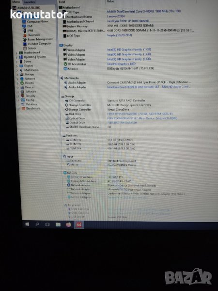 Оперативна памет 4GB DDR3L на една банка и има още един свободен слот