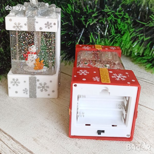 преспапие с форма на подарък, което свети в мека светлина. Всяко от преспапиетата си има приказна коледна картина във вътрешнстта си. Вариантите са три – Снежко с катеричка, Дядо Коледа или къщичка. Красива коледна декорация. Работи с 3 ААА батерии, които не са включени в комплекта. Всяко преспие идва с картонена кутия, подходящи са за коледен подарък.