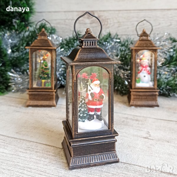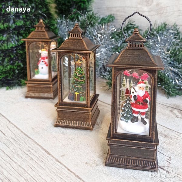 коледен фенер с приказна фигура във вътрешната си част. Единият вариант е Снежко с подарък, вторият вариант е Дядо Коледа с елхичка, а другият вариант е красива коледна елха. Който и да си избереш и трите фенера са красиви! Може да се закачи и да се превърне в приказна висяща коледна украса. Вътре във фенерът има лед лампичка, която свети в много мека светлина. Работи с 3 броя AG13 батерии, които са включени в комплекта. Фенерите се предлагат в картонена кутия, подходящи са за подарък.