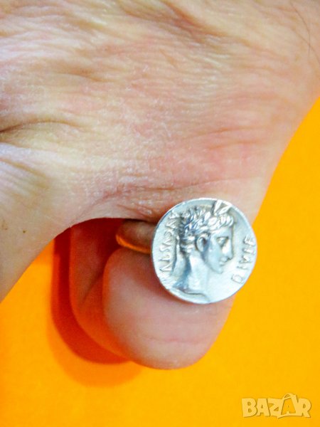 Старинен мъжки сребърен пръстен с лика на римския император Октавиан Август - възродил рим сребро