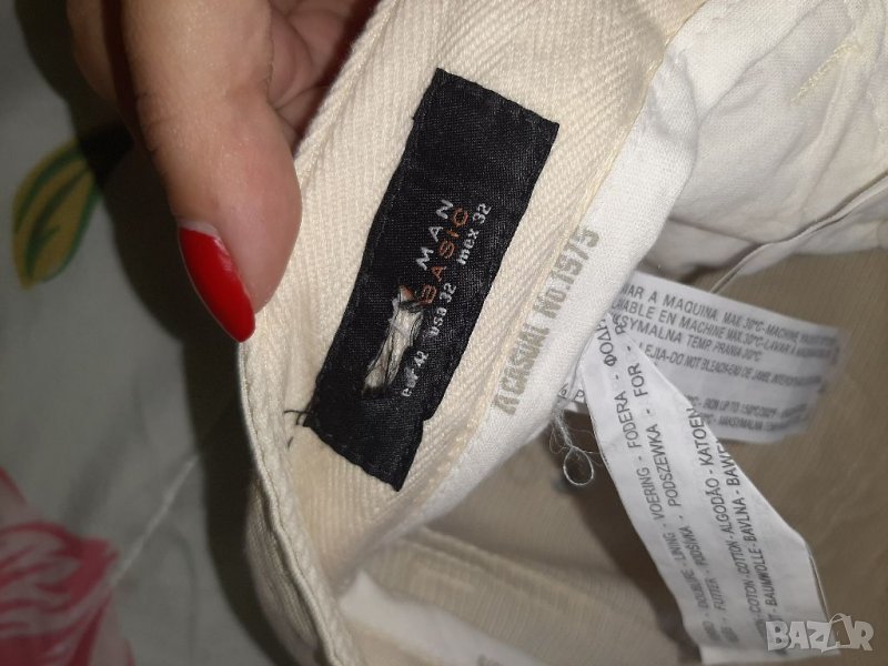 Не съм много наясно с мъжката номерация, затова публикувам снимки и на етикетите. На последната снимка ще видите размери в сантиметри на талия едностранно, крачол от чатала до долу, широчина на крачола в долната част едностранно, понеже една жена се интересуваше.