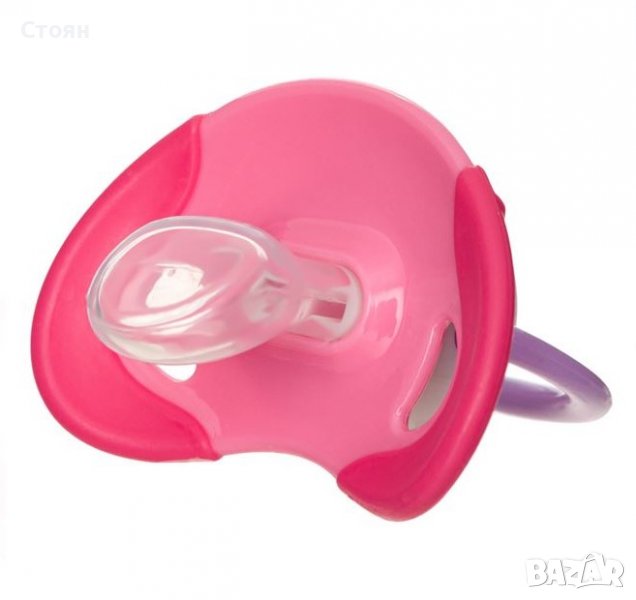 Силиконови залъгалки с мек ортодонтски накрайник, специално създадени да осигурят комфорт на детето. В розово и лилаво. 0% BPA.