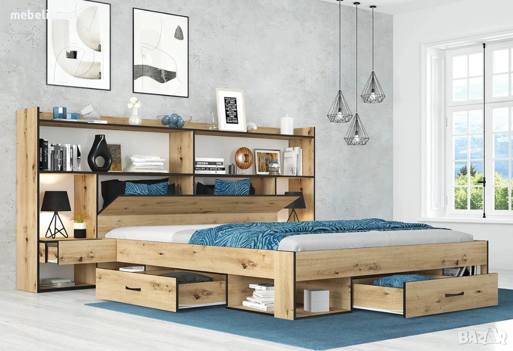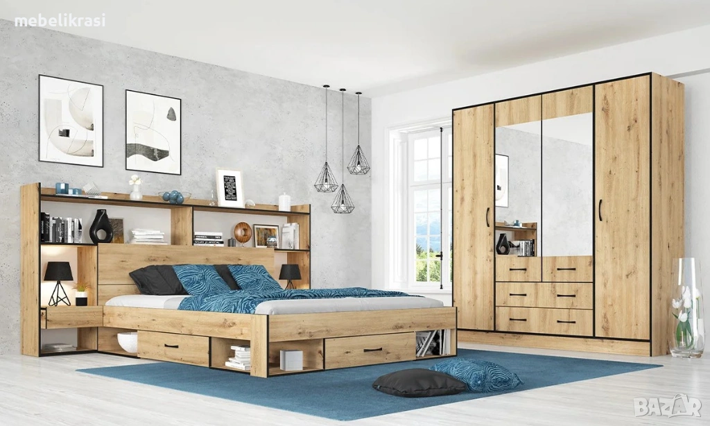 Спалня "Лайт" с чекмеджета,нощни шкафчета, ракла и надстройка.