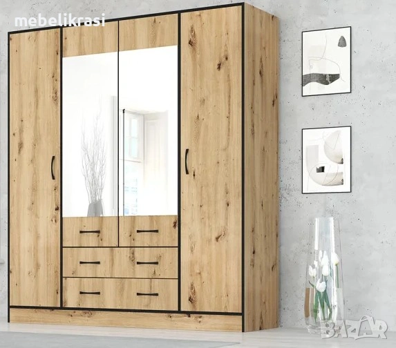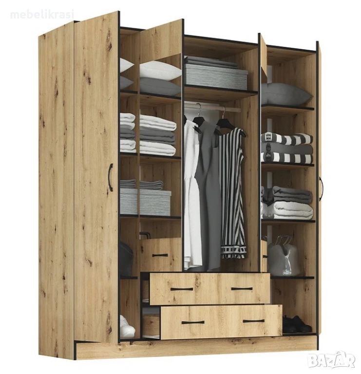 Двете крила е средата са с лост за висящи дрехи, над който има рафт.