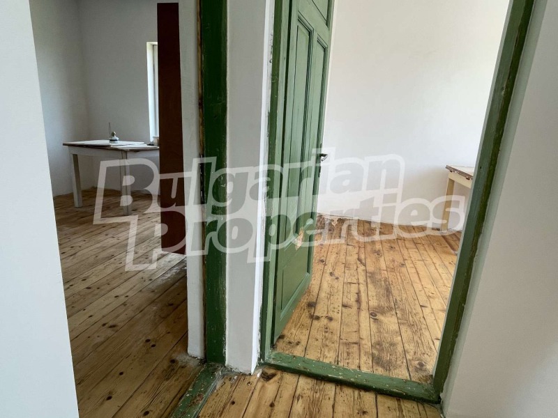 Втори етаж: Пет спални, от които едната е преходна( подходяща за родителска и към нея детска спалня), две бани с тоалетни. Запазен и реновиран е дървеният под на етажа- естествено дърво.